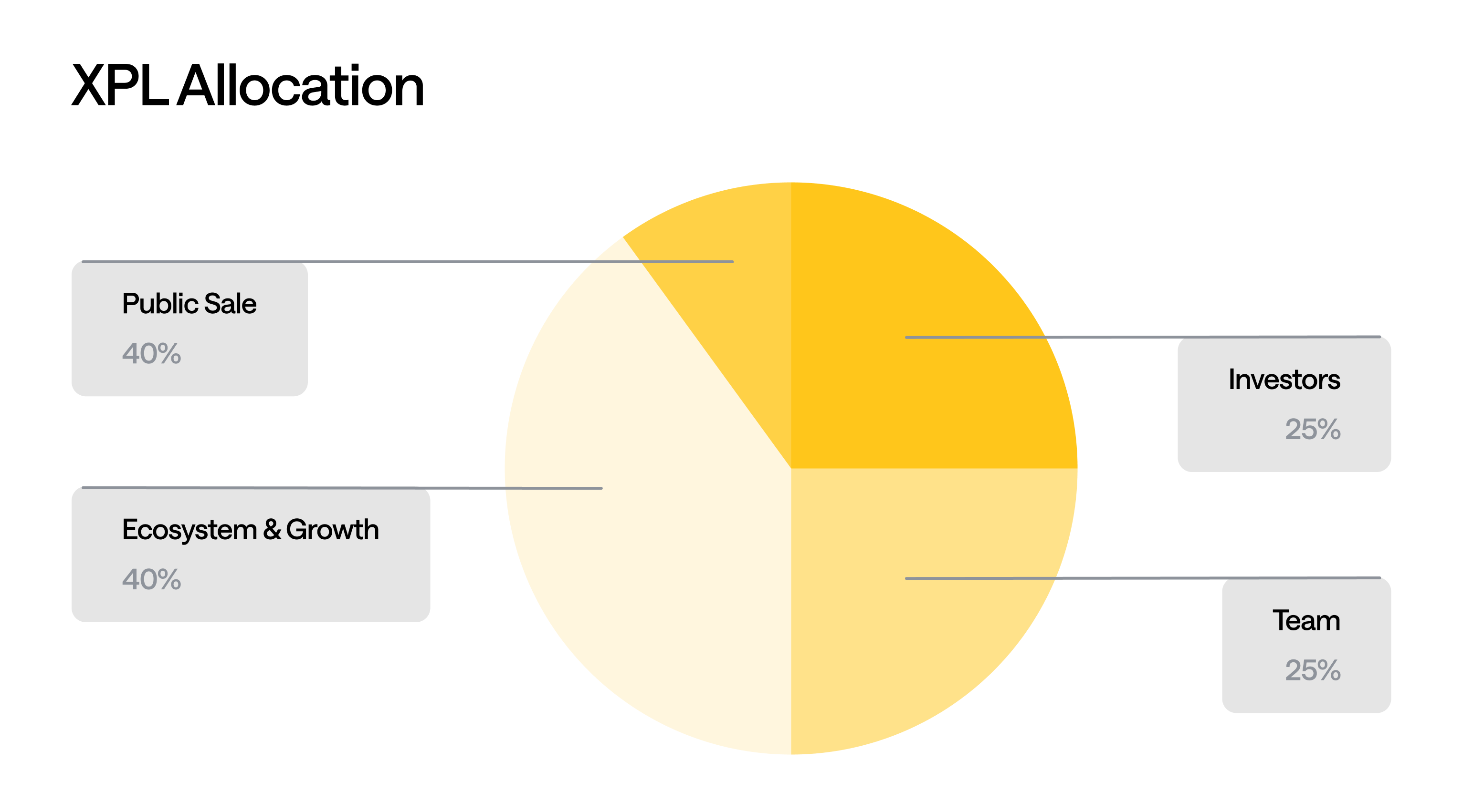 - Ecosystem & Growth (40%): 4 billion XPL representing the largest allocation for network development, partnerships, and incentive programs