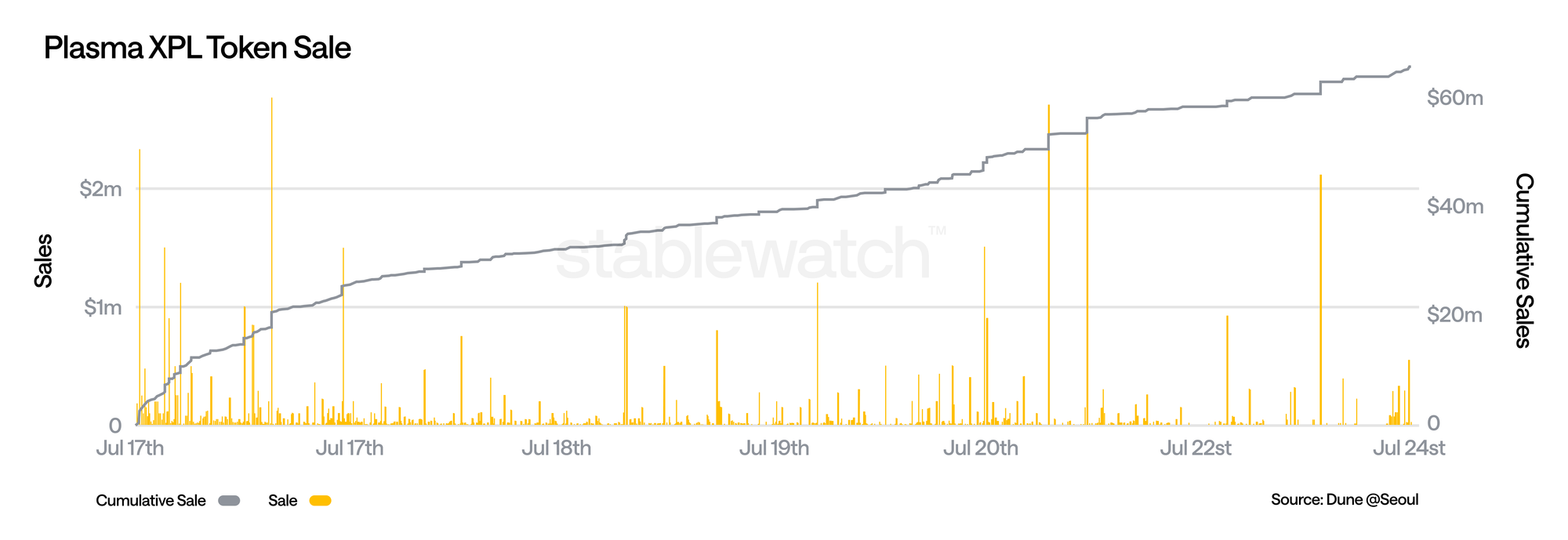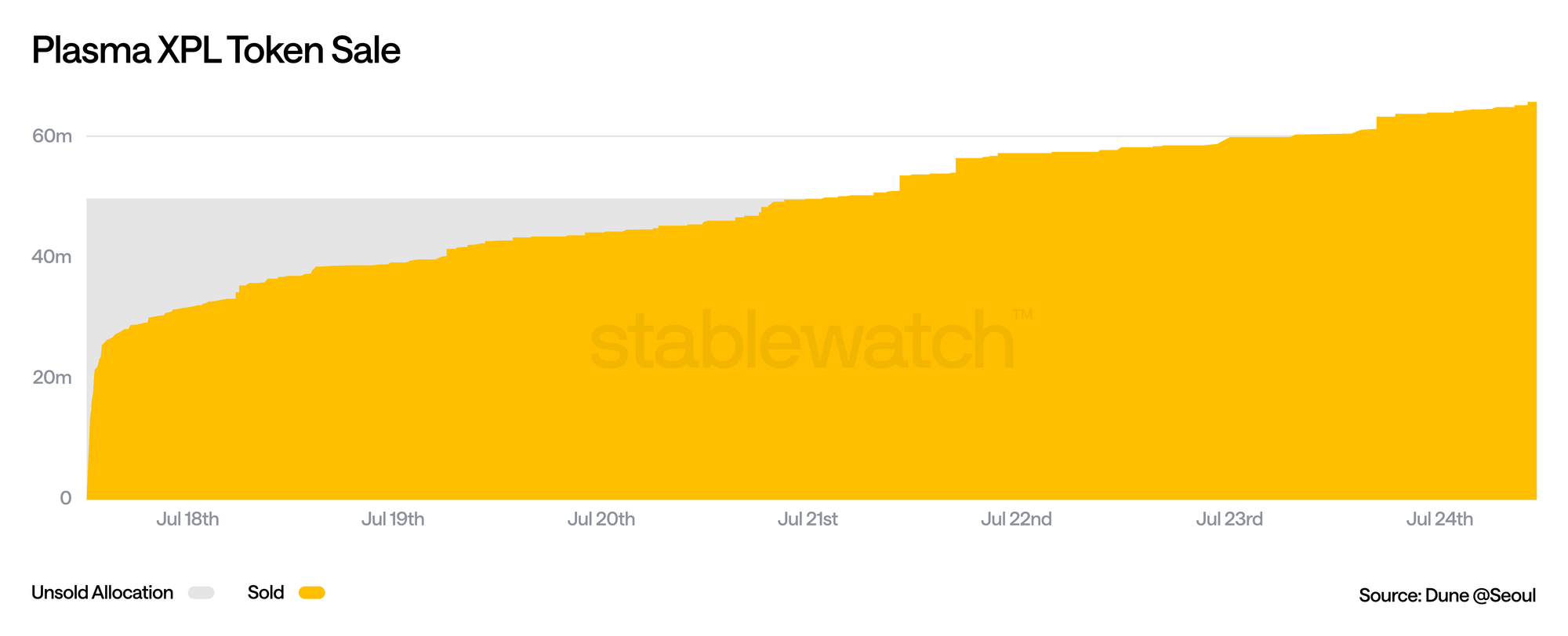 The Plasma XPL public sale, launched on 17th and set to end on the 28th of July, has been a resounding success, so far raising $66,237,736 in cumulative sales across 2195 unique addresses, with an average investment of $30,177 per participant. The sale allocates 1 billion XPL tokens (10% of total supply) at a $500 million fully diluted valuation.