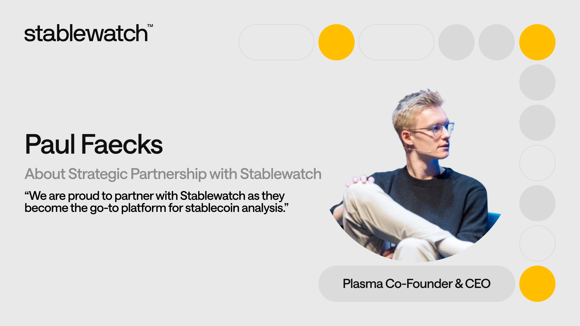 The collaboration between Stablewatch and Plasma stems from our aligned vision of advancing stablecoin accessibility and adoption. Plasma, as the first blockchain built exclusively for stablecoins, is pioneering technologies and an ecosystem that accelerate their global integration. Stablewatch complements this mission by consolidating critical market intelligence and analytics into a single, user-friendly hub.
