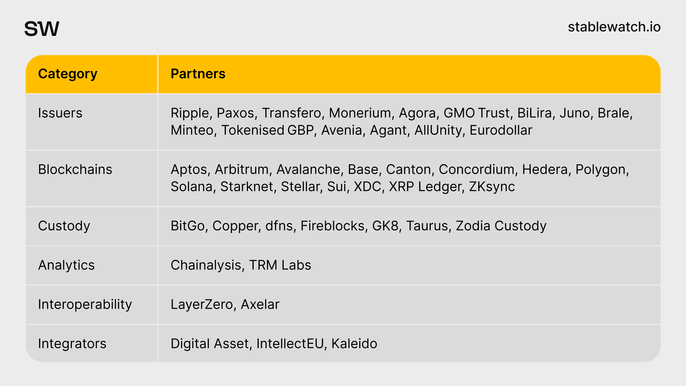 Institutional hosted wallets will be provided by Ubyx through a range of already established partners: BitGo, Copper, Dfns, Fireblocks, GK8 by Galaxy and Taurus. Creating the capability for financial institutions to accept stablecoin payments and give access to tools like Chainanalysis necessary to detect financial crime.